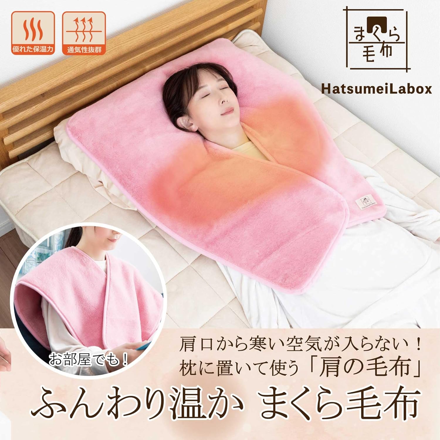 睡眠時の布団の隙間から入る冷気から肩口を守る、枕に掛けて使用する"新発想"の毛布です。