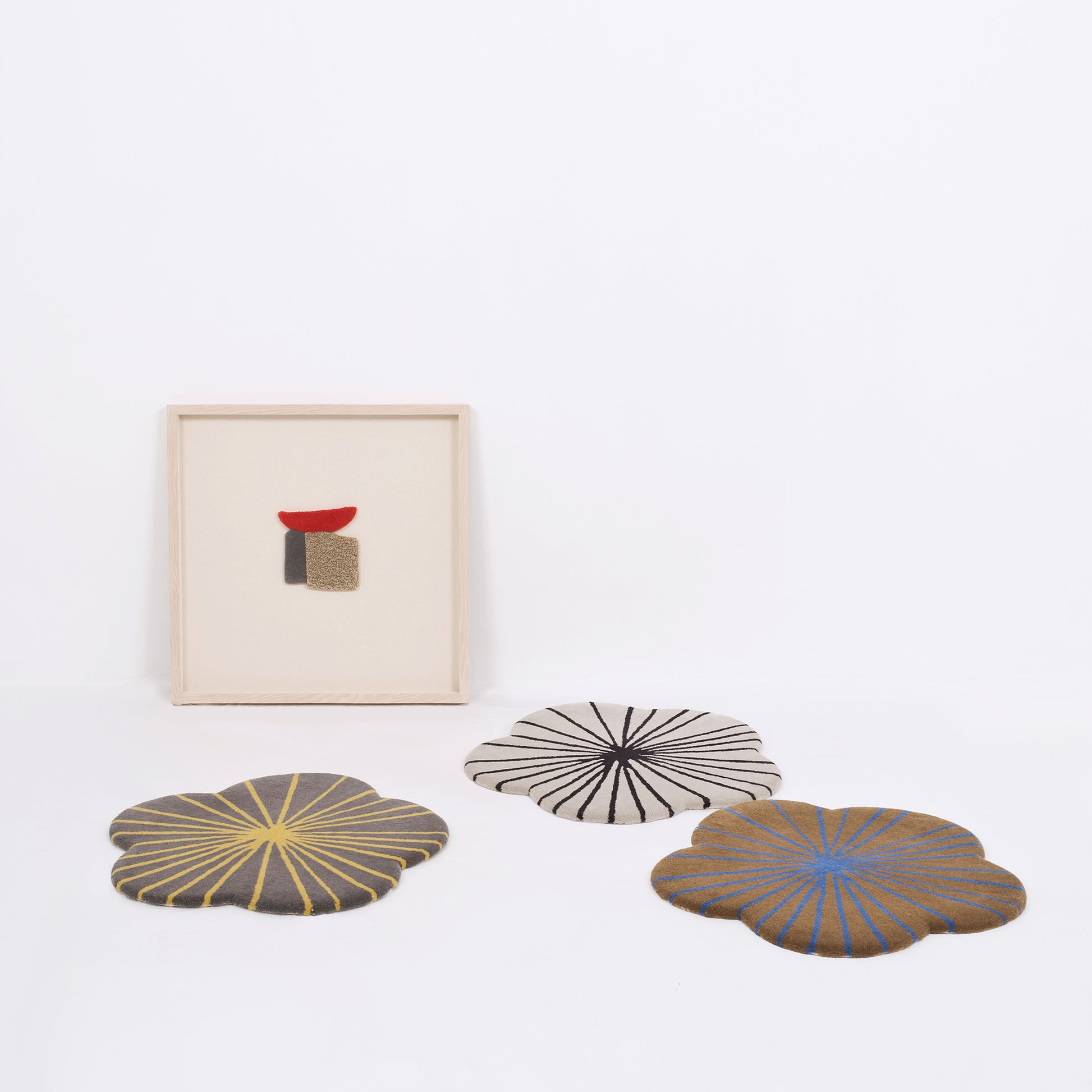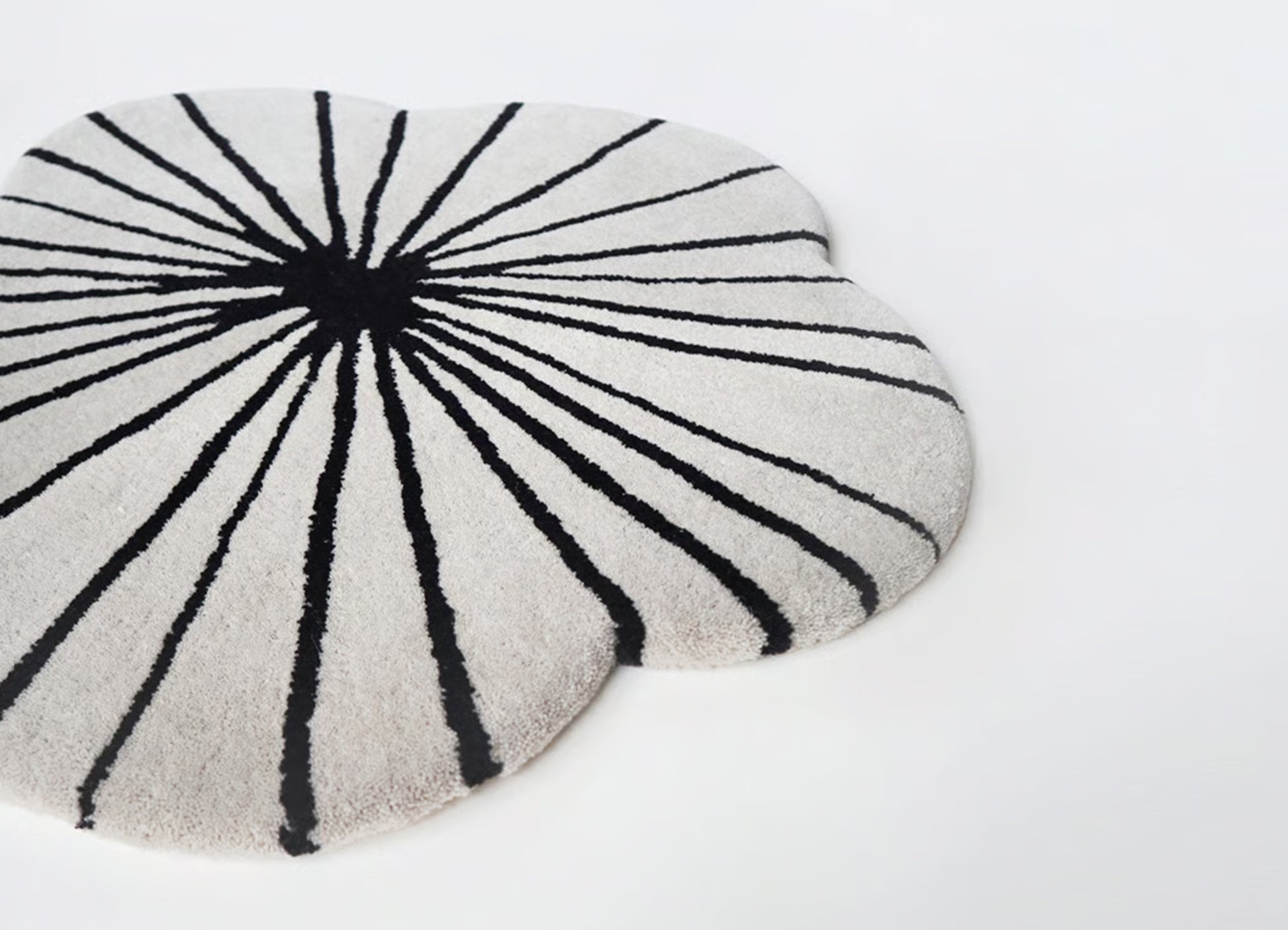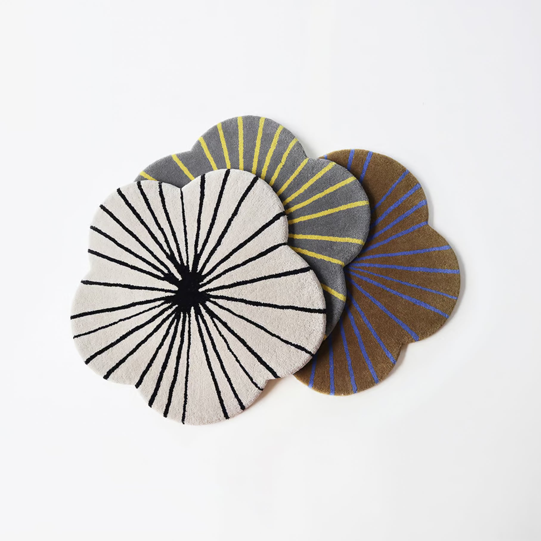 帰宅時にまっさきにお迎え入れて愛嬌のあるかわいらしい玄関用ラグシリーズ。 玄関に花が咲くというコンセプトからデザインしたラグです。