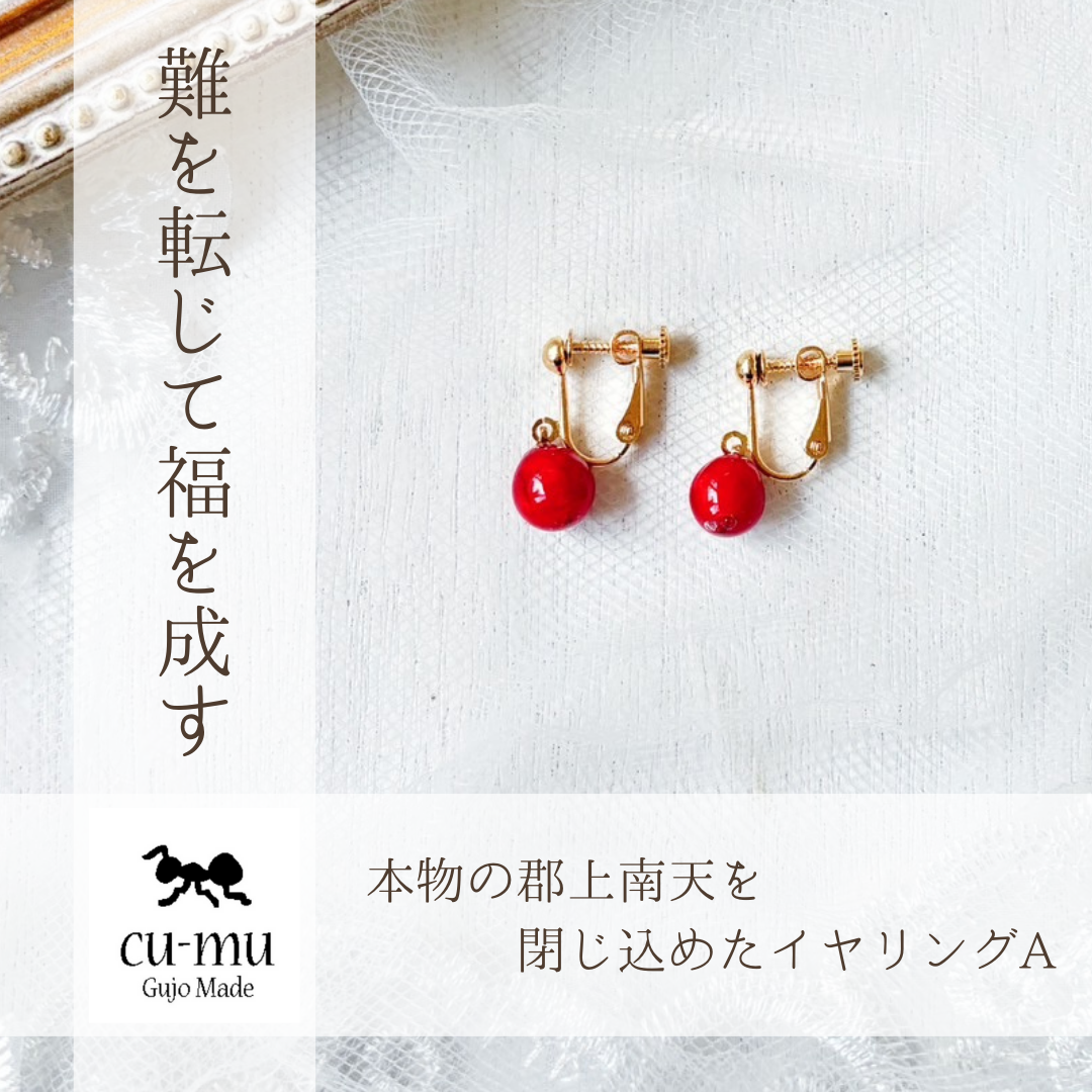 ・本物の郡上南天を閉じ込めたイヤリング[1ペア]