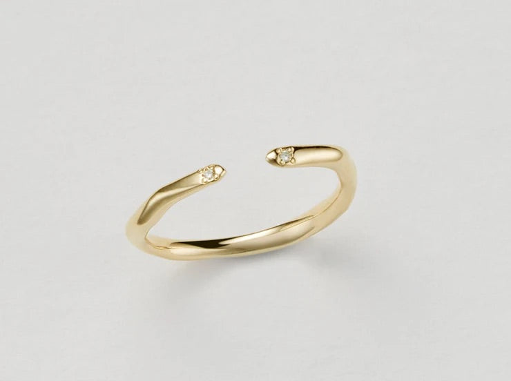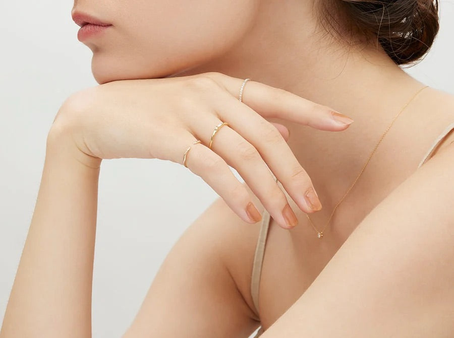 左右の中心にキラッと光るダイヤモンド。さりげなく輝いて、重ねても1つでも存在感があるよう仕上げました。小指からチャンスを取り込むピンキーリングとしてデザインしています。