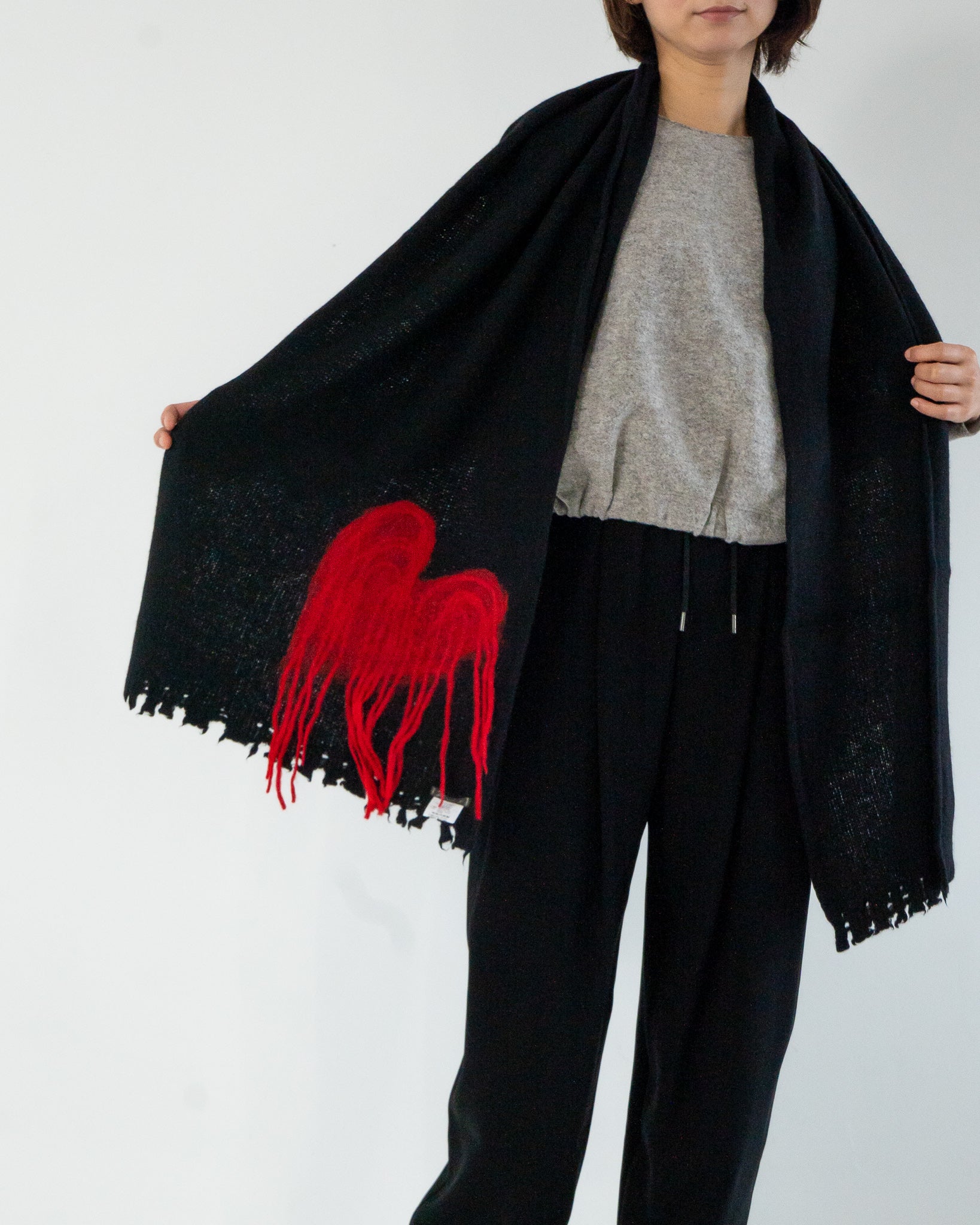ヴァージンウール、シルクといったラグジュアリーな素材と、アイコニックなデザインとの組み合わせがファリエロサルティらしいストールです。