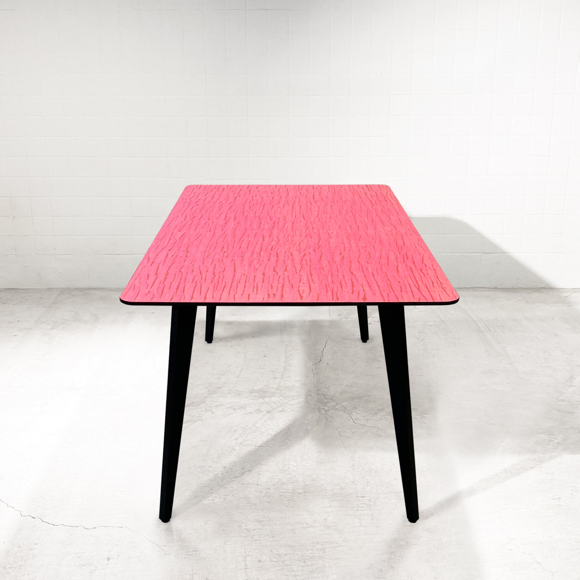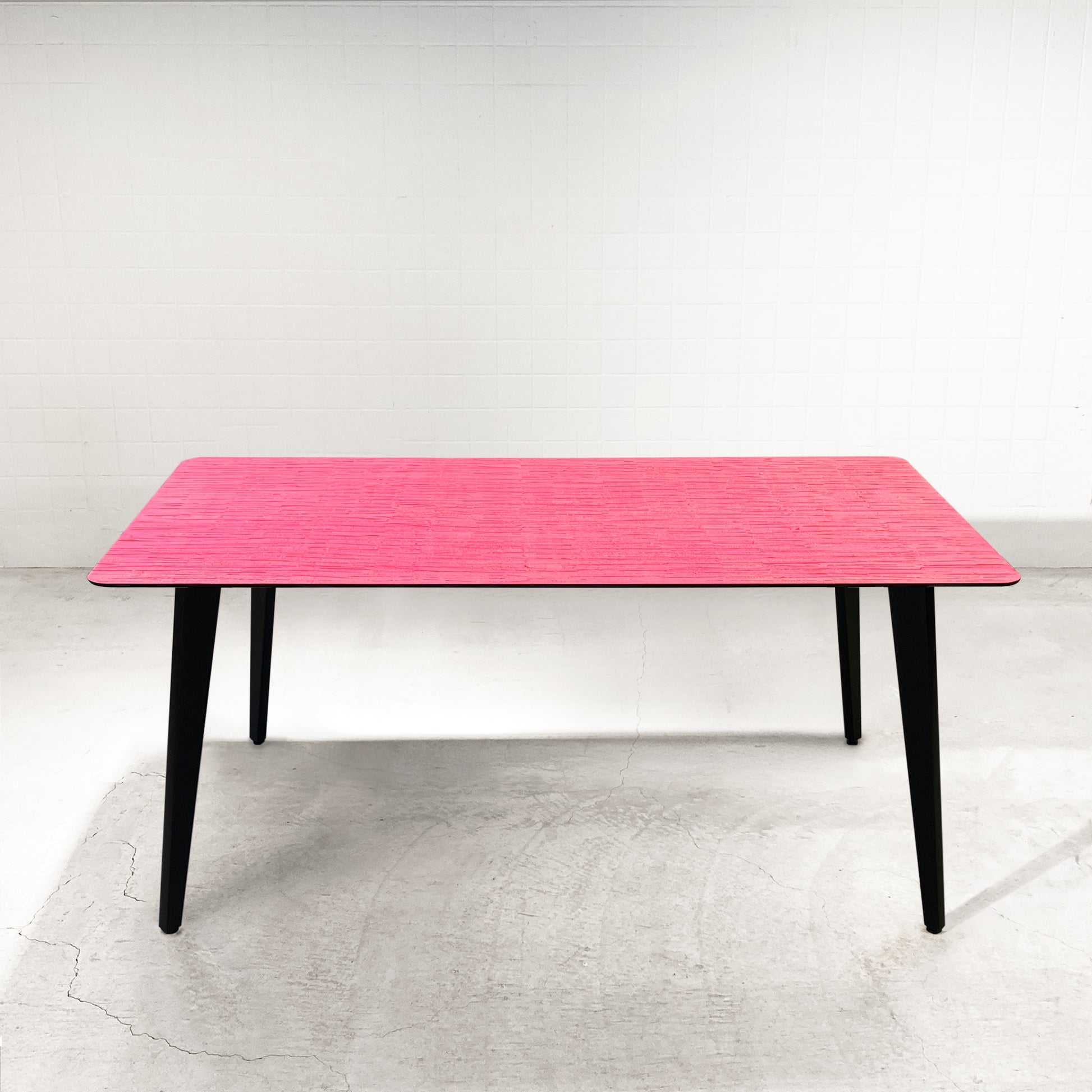 BARK-PINKは、濃淡の異なるピンクのペイントを積層させ、サンダーで削り出すことで、特殊な模様をつくりだしています。シックな印象で、ダイニングテーブルやディプレイ、デスクなど様々な用途にご利用できます。