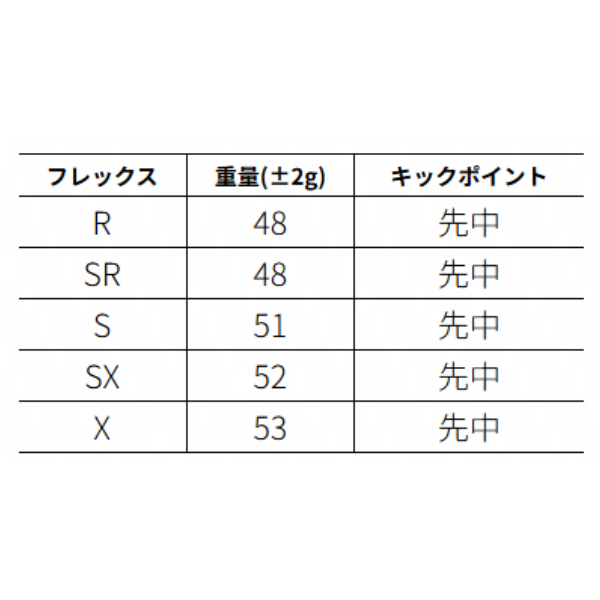 つかまり過ぎのミスを軽減させ、インパクト付近でのスピーディーなしなり戻りによって“高弾道かつ、高初速”を図れる“振りやすさ”を追求した50g台のドライバーシャフト。参考値※フレックスS:46inch (60 度法) / D2 / 243cpm