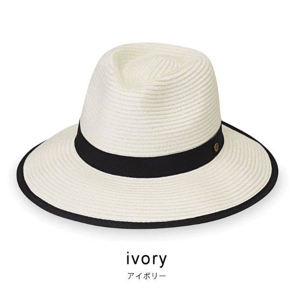 長い髪の毛を一つに束ねて被れる機能的なギャビ。髪の毛を後で一つに結ぶと、中折帽やつば広帽を深く被れないという経験はありませんか?そんな悩みを解決してくれる中折れ帽の誕生です。このツバの広さであれば、ゴルフでも活躍してくれますね。