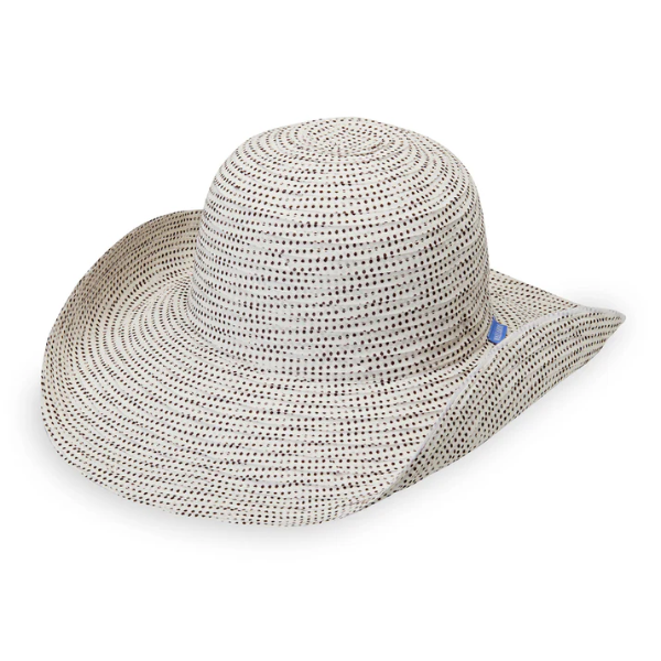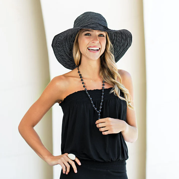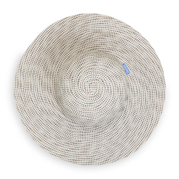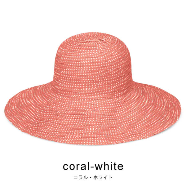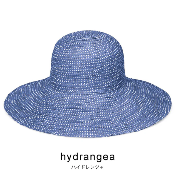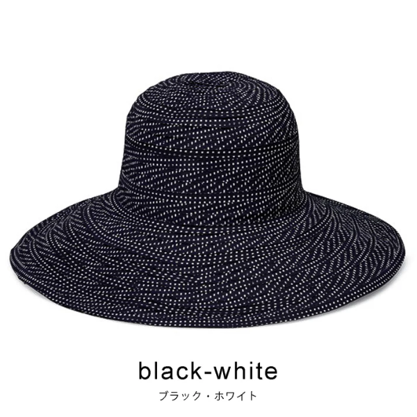顔を全体を覆うような大きなツバが目を引きます。細かい水玉模様の柔らかいマテリアルが、波打つ上品なデザイン。カジュアルからエレガントなスタイルまで幅広く合わせられます。